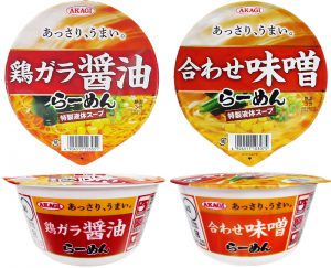 このAKAGIの場合、写真まで殆ど一緒だからなおさら判り難い。そして写真が似ている理由は、醬油と味噌とで同じ具材を使いまわしているから。まあこの辺が低価格の秘訣なんだろうな。