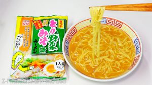 このとり野菜みそを題材とする即席麺はカップだとかつてイトメンが、現在は明星食品が出しており、他に袋のチルド麺や生麺もあり、袋の乾麺で今買えるのが今回の品である。