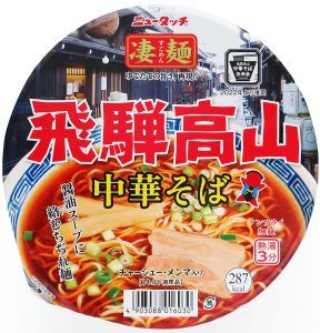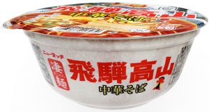 私が持つ飛騨高山の勝手なイメージは山に囲まれた険しい地形、豪雪が降る過酷な気候、古い街並みといったもので、これらからラーメンに関しても浮わついた部分のない質実剛健で厳しい味を想像してしまうし、フタのグラフィックもそれに沿ったものだ。これで中身がギトギトの派手派手で軽薄さを感じるものだったら私は怒る。