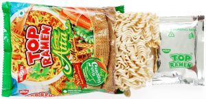 一方で今回の品は健康志向かつ高級とされる全粒粉小麦を使い、買い値が26.04INRで内容量が70gという、異なる世界の製品だと言えよう。なのに同じTop Ramenというブランドを使う必然性があるのか?ブランドイメージがボケるのでは?と疑問を持った。