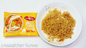 | 具・その他 | 昔のLucky Me!はフィリピン製だったのが、いつの間に輸出版はタイ製に置き換わっていました。麺の存在感が増したように感じた一方で、気怠い南国っぽさは相変わらずです。 |