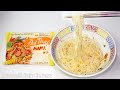 | スープ | ソースはとても辛く、激辛の領域に入ります。 ただ日本の製品に例えると、ペヤングの激辛やきそばよりも少し穏やかな程度で、耐えられなくはありません。 また甘さとうま味が強く出ており、それなりに味わえます。 一方で、尾を引く辛さでもあり、食べ終わってからも暫くは、口の中に切れるような痛みが残ります。 | |||