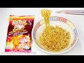 | スペック | 熱湯5分お湯切り、内容量107g/麺90g、444kcal(1,865kJ)、ナトリウム〜g(食塩相当量4.8g) | |||