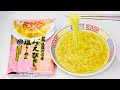 | めん | 麺は2mmの角断面で、輪郭はハッキリしています。 色は茶色く、醤油味が付いているようで、僅かに日清のチキンラーメンっぽい匂いがします。 湯戻りは悪く、ゆで三分ではまだ少し硬めで、ゴワゴワした食感です。 量は少なく、これ一個では満腹になりません。 | |||