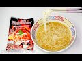 | スペック | 熱湯3分、内容量75g/麺61g、335kcal(1,407kJ)、ナトリウム〜g(食塩相当量1.3+4.0g) | |||