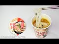 | スペック | ゆで3分、内容量97g/麺80g、430kcal(1,806kJ)、ナトリウム〜g(食塩相当量1.6+3.5g) | |||