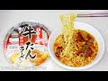 | スープ | スープは赤黒い油が表面を覆い、食べると唇がギトギトします。 とても辛く、かつ強い味で、うっかり 塩と化学調味料を三食分ぐらい入れてしまった感じです。 味や香りの要素は多くなく、とにかく力で押しまくる味です。 辛さもあって、じっくり味わうスープではありません。 | |||
