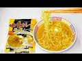 | めん | 麺は幅2.5mmの軽い扁平で、角は丸められており、表面はツルツルして滑らかです。 古風なパッケージの割には重量感がある反面、少し鈍い印象です。 また他の即席袋麺には見られないような、スムーズにとろけるような舌触りがあり、これは決して悪くない個性です。 | |||