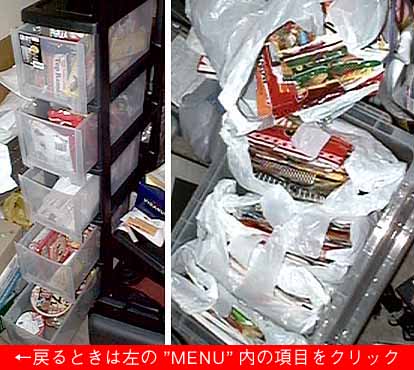 そして、この頃から珍しいラーメンの袋やフタは捨てずに取っておく習慣がつき、インターネットで情報公開するようになってからは食べた全ての袋をとっておくようになり、気が付いたら現在のコレクションは2000を越える枚数(01年08月)に達しました。 今では年間300食を越えるペースで即席ラーメンを食べまくっています。