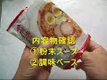 | 付属品概要 | 粉末スープ、かやく(豚挽肉?)、調味油 | ||