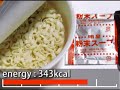| スペック | ゆで3分、Net116/73g、403kcal(1687kJ)、ナトリウム0.8+1.6g | |||
