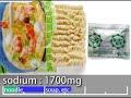 | スペック | ゆで3分、Net85/80g、378kcal(1583kJ)、ナトリウム1.88g | |||