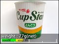 | スペック | 熱湯3分、Net77/55g、365kcal(1528kJ)、ナトリウム0.5+1.1g | |||