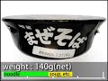| スペック | 熱湯5分お湯切り、Net140/90g、551kcal(2307kJ)、ナトリウム2.2g | |||