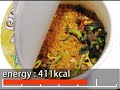| スペック | 熱湯3分、Net57/53g、250kcal(1047kJ)、ナトリウム1.2g | |||