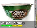 | スペック | 熱湯3分、Net123/65g、469kcal(1964kJ)、ナトリウム1.0+2.1g | |||