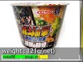 | スペック | 熱湯3分、Net121/90g、575kcal(2407kJ)、ナトリウム0.5+2.6g | |||