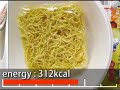 | スペック | ゆで2分、Net65g、235kcal(982kJ)、ナトリウム1.06g | |||
