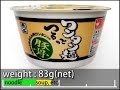 | スペック | 丼お湯入れ3分、Net60g、229kcal(959kJ)、ナトリウム1.30g | |||