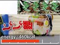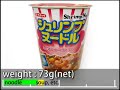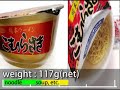 | スペック | ゆで2分、Net65g、253kcal(1059kJ)、ナトリウム1.06g | |||
