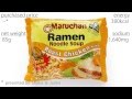| スペック | ゆで3分、Net89/80g、392kcal(1641kJ)、ナトリウム0.9+1.5g(食塩相当量6.1g) | |||
