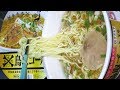 | めん | 中太の扁平断面、気泡感が強く歯応えはスポンジー、ラーメンの匂いはせずうどん的 | |||