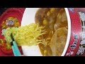 | めん | 縮れが強い扁平断面、柔らかめで表面は滑らか、日本の安いカップ麺より品質は良い | |||