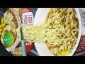 | めん | 太くて輪郭はソフト、気泡感はあるが、赤いきつねよりも密度が高くて重量感が高い | |||