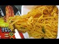 | スペック | 熱湯5分お湯切り、Net121/80g、486kcal(2035kJ)、ナトリウム〜g(食塩相当量5.2g) | |||