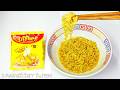 | めん | 麺は幅3mmの扁平で、表面はざらついており、気泡感が強く、スポンジみたいに水分を吸い取るような舌触りです。 小麦粉の密度が低いような軽い食感で、歯応えはコシや粘りに欠け、崩れるような脆さを感じます。 ただ、これがインドの即席麺の一つの定型でもあり、食べ続けているうちにだんだん慣れてきました。 | |||