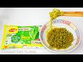 | めん | 麺は幅2.5mmの薄い扁平断面で、ヒラヒラした舌触りです。 少し気泡感がある軽い食感で、適度な粘りがあり、インドのカップ麺にしては脆さを感じさせません。 海外生産のCup Noodlesの中では、日本のカップヌードルによく似ている麺です。 | |||