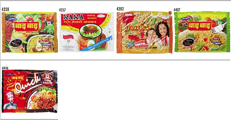 10-08/13作成、11-08/18改訂(1) No.4328(`10-03)〜 ▲No. 年月日 企業名 ジャンル 品名 4328 100322 CG Foods 袋ラーメン Chaudhary's WaiWai Chicken Flavoured 4357 100502 Him-Shree Foods 袋ラーメン RARA Instant Noodles / with Chicken Soup Base 4382 100606 Himalayan Snax & Noodles 袋ラーメン Mayos Instant Noodles Chicken 4407 100711 CG Foods 袋ラーメン Chaudhary's WaiWai Vegetable Masala Flavoured 4446 100918 CG Foods 袋ラーメン Chaudhary's WaiWai Quick / Chicken Schezwan