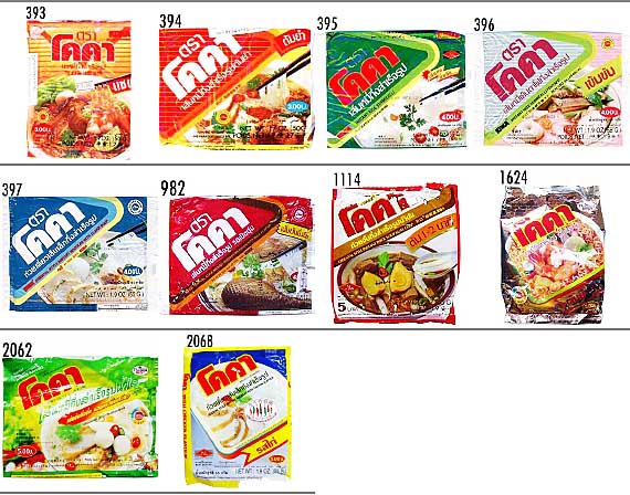 Thai Sanwa Food / KOKA ▲No. 年月日 メーカ/販売者 ジャンル 品名 393 930810 Thai Sanwa Food 袋 KOKA Instant Noodles 394 930810 Thai Sanwa Food 袋 KOKA Oriental style instant noodles (Meehoon)with tomyum flavour 395 971122 Thai Sanwa Food 袋 KOKA Instant Rice Vermicelli(チキン味ビーフン) 396 971123 Thai Sanwa Food 袋 KOKA Instant Rice Vermicelli Yenyafo(エンタフォ味ビーフン) 397 970716 Thai Sanwa Food 袋 KOKA Oriental style instant noodles with Clear Soup(チキン味) 982 980215 KOKA 可口(Thai) 袋 Orient style noodles(Meehoon) with duck flavour 1114 980927 SanwaFood(Thai) 袋ワン 可口 即席濃湯果汁(「果」には米へんがつく) 1624 000604 Sanwa Food(Thai) 袋ラーメン Instant Noodle Tom Yum Shrimp Flavour 2062 011021 可口 KOKA(Thai) 袋ビーフン KOKA センミートムヤムビーフン 2068 011028 可口 KOKA(Thai) 袋ビーフン KOKA センレックチキン
