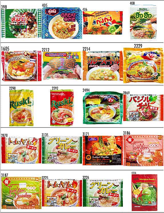 その他2 ▲No. 年月日 メーカ/販売者 ジャンル 品名 4375 100527 輸入者:国際インフォメーションセンター日韓企画 カップラーメン グリーンカレーラーメン 4607 110514 Fashion Food 袋ラーメン FF Palo Duck Flavoured Instant Noodles 4646 110709 The Decent Noodles Factory 袋ラーメン Sue Sat Garlic Chicken Flavour 4651 110716 Thai Ha Public 袋ラーメン Kaset Instant Vermicelli Shrimp Suki Soup Flavour 4661 110730 Fashion Food 袋ラーメン FF Beef Flavoured Instant Noodles 4660 110728 Nissin Foods Thailand カップラーメン Cup Noodles Seafood Flavour 4706 111001 Thai Ha Public 袋春雨 KASET Instant Vermicelli Spicy Seafood Salad Flavour 4734 111112 Fashion Food 袋ラーメン FF Sardines Tom Yum Flavoured Instant Noodles 4763 111224 Exotic Food 袋ラーメン Authentic Thai Noodle Soup, Chicken Flavour(オーストリアで購入) 4910 120723 The Decent Noodles Factory 袋ラーメン iDles Instant Noodles Curry 4967 120929 The Decent Noodles Factory 袋ラーメン iMee Beef Flavour