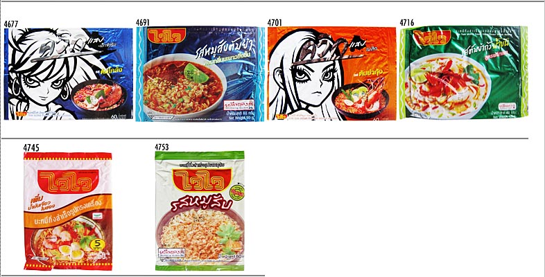 Thai Preserved Food Factory / WAIWAI2 ▲No. 年月日 メーカ/販売者 ジャンル 品名 4677 110821 袋ラーメン WAIWAI Quick Zabb / Tom Klong Flavour Instant Noodles 4691 110910 袋ラーメン WAIWAI Minced Pork Tom Yum Flavour Instant Noodles 4701 110924 袋ラーメン AIWAI Quick Zabb / Tom Yum Shrimp Flavour Instant Noodles 4716 111015 袋ラーメン WAIWAI Tom Yum Shrimp Cream Soup Flavour Instant Noodles 4745 111127 袋ラーメン WAIWAI Soeng Kreung Instant Noodle 4753 111210 袋ラーメン WAIWAI Minced Pork Flavour Instant Noodle
