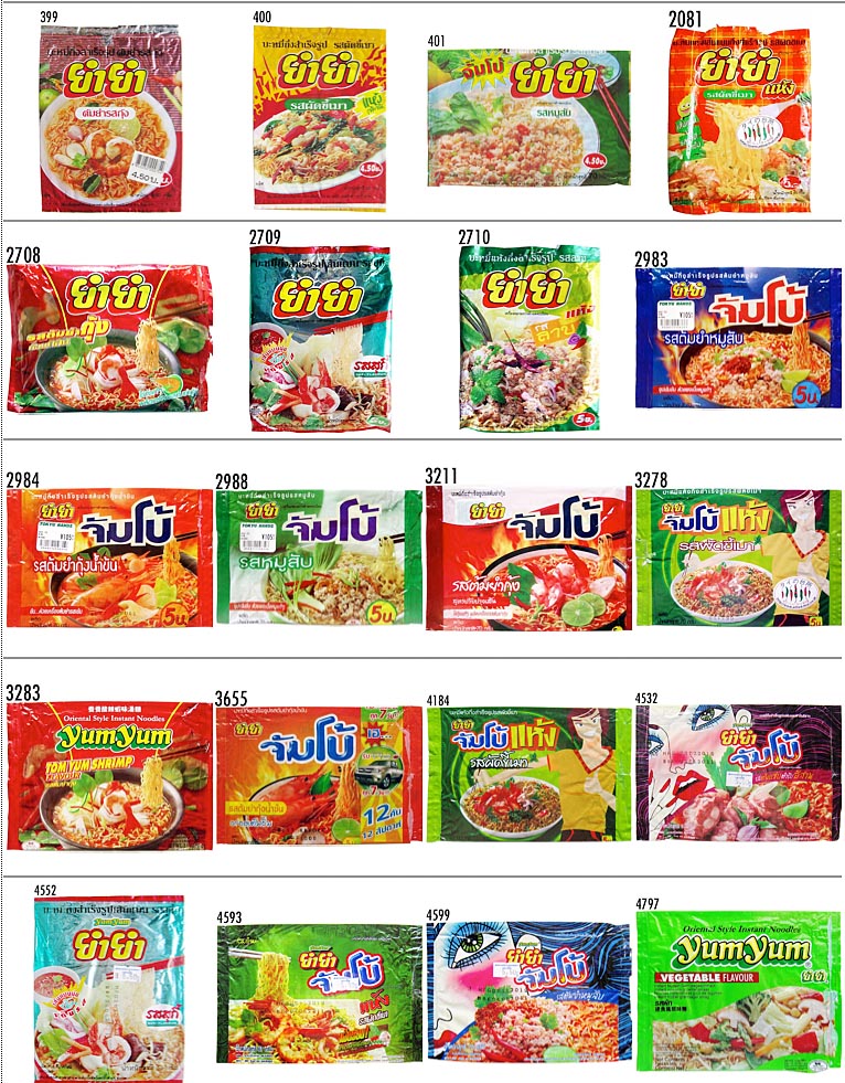 Ajinomoto/Wan Thai Foods / YUMYUM2 : No.4972('12-10) 〜 ▲No. 年月日 メーカ/販売者 ジャンル 品名 4972 121002 袋ラーメン YumYum Jumbo Tom Yum Kung Flavour